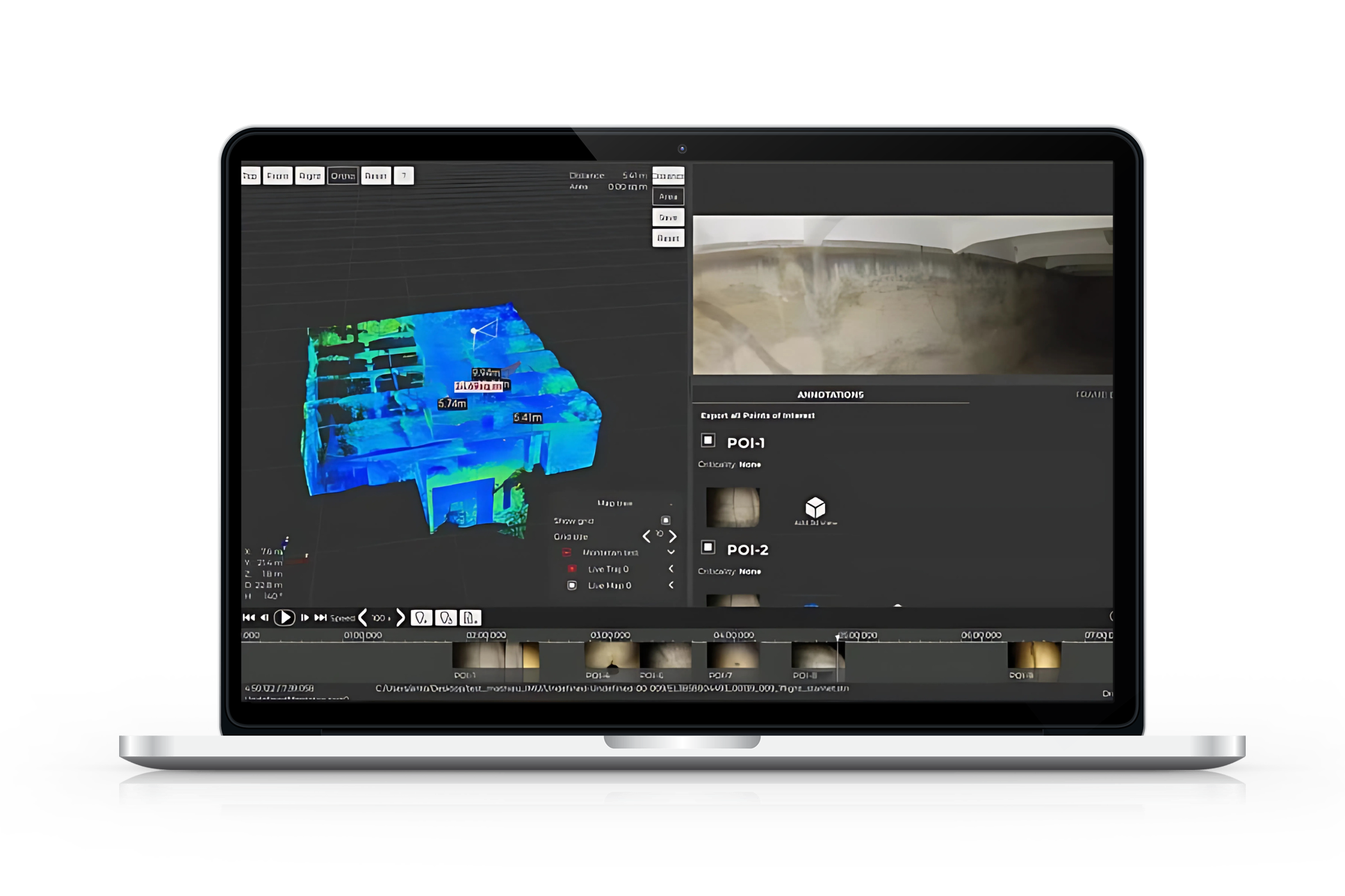 (Report, Foto, Video, 3D-Modell, ...) und können diese optional auch über Cloud-Software zur Verfügung stellen. In der Software und den übermittelten Daten finden Sie alle relevanten Informationen (Schäden, Mängel, Anomalien etc.) zu Ihrem Sonderbauwerk. Im Report werden Ihnen die zugeordneten Felder aufgezeigt und Handlungsempfehlungen abgegeben. Der Endbericht beinhaltet Bildmaterial, sowie Identifikation, Lokalisation und exakte Vermessung von Anomalien.